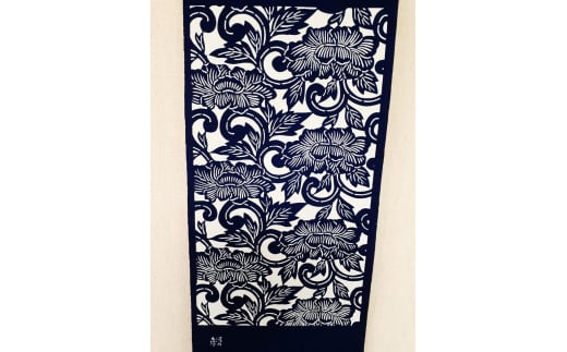 長さ1m、幅33cmの布に河内木綿文様を藍手染めしたタペストリーです。玄関の装飾やマンションなどの白い壁面を飾るのにぴったりです。