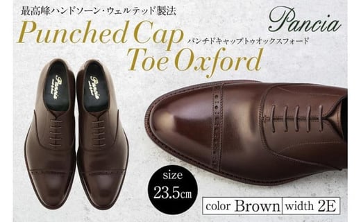 革靴 パンチドキャップトゥオックスフォード(ハンドソーンウェルテッド製法/博多製造)サイズ:23.5cm