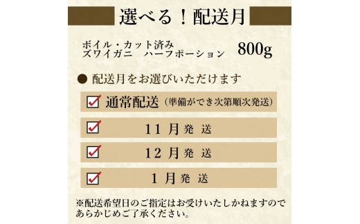 ズワイガニ ハーフポーション 800g ボイル・カット済み<福岡市製造>