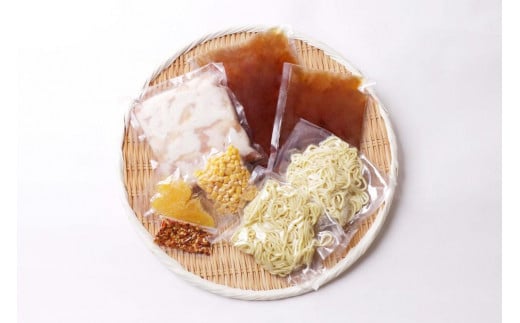 国産牛もつ(小腸)、特製スープ【醤油、清酒、調味料(アミノ酸等)コーン】、小麦、かんすい、塩、クチナシ色素