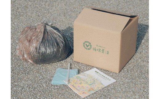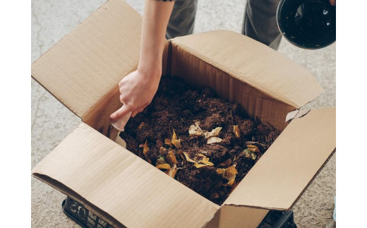 容器となるダンボール箱(36cm×32cm×31cm)、コンポスト基材、虫予防カバー(簡易カバー)、冊子「堆肥づくりのススメ」