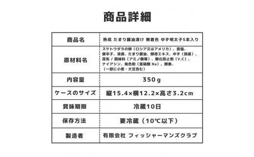 【福岡市】熟成 たまり醤油漬け 無着色 ゆず明太子5本入り(350g)