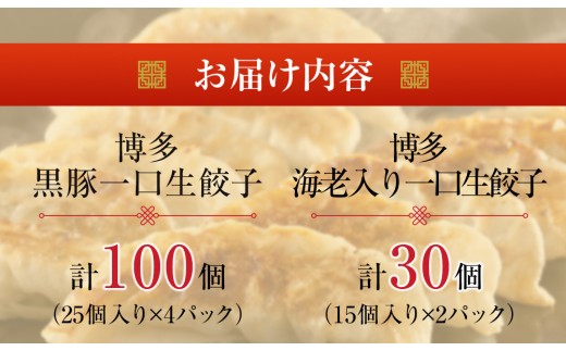 計130個 福岡ブランド 博多黒豚一口生餃子と博多エビ入り一口生餃子セット創業40年以上福岡老舗会社製造 【1週間以内に発送!】