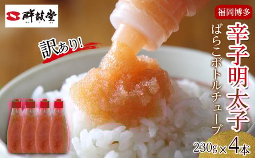 【最短3日発送】博多辛子明太子 ばらこボトルチューブ 920g(230gx4本) 冷凍 バラコ ばら子 めんたい 明太子 辛子明太子 明太チューブ 無着色 博多 福岡 福岡 明太マヨ 家庭用 簡単 便利 絞って使える 訳あり