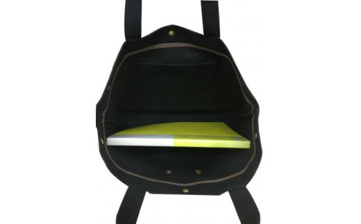 【福岡市の縫製工場オリジナルブランド OKUNIYA】本革ネーム(キャメル) トートバッグ ブラック【サイズ:L】