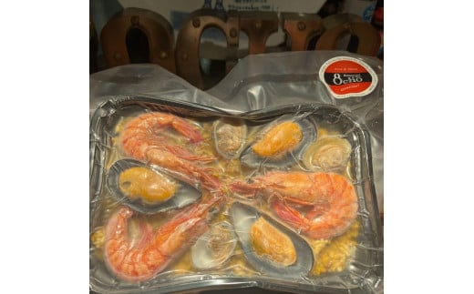 米(国産)、魚介だし(魚)、イカペースト(いか・玉ねぎ・トマト・オリーブオイル等)イカ、有頭えび、ムール貝、ベビーホタテ、アサリ、オリーブオイル、サフラン、パプリカパウダー、にんにく、塩、コショウ