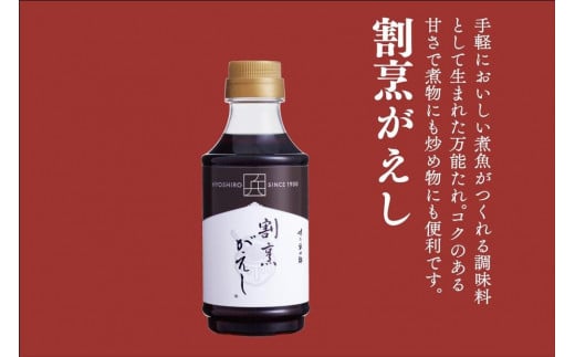 原材料:砂糖(国内製造)、米発酵調味料、しょうゆ、還元水飴、かつお節・さば節だし、かつお節エキス、醸造調味料、食塩/調味料(アミノ酸等)、酒精、カラメル色素、酸味料、(一部に小麦、さば、大豆を含む)