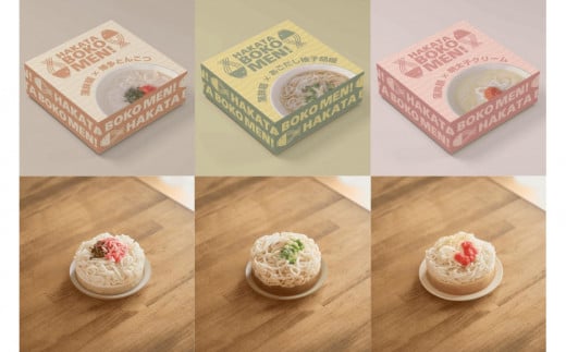 【セット】【福岡市内製造】罪悪感のない練り物のヘルシー麺「HAKATA BOKOMEN!」3種セット(とんこつ1個・あごだし柚子胡椒1個・明太子クリーム1個)
