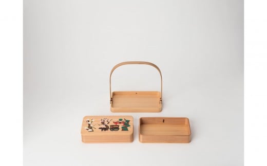【福岡市の伝統産業支援施策「福岡伝統産業オープンイノベーション事業」で福岡の伝統工芸の魅力PR品として開発】博多曲物 2段重かご付 菅原伝授手習鑑