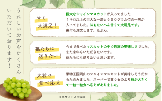 ギフトや贈答用に、香り良いシャインマスカットは皮ごと食べられる人気の葡萄です!
