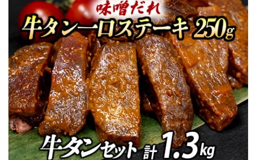 厚切り牛タン(漬込み熟成)400g×2 牛タン一口ステーキ (味噌だれ) 250g 牛タンスライス(赤だれ)250g 計1300g