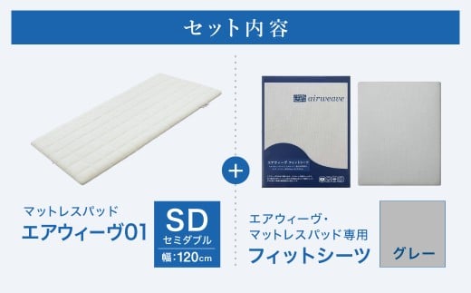 届いてすぐに使える!エアウィーヴ01 セミダブルとシーツのセット