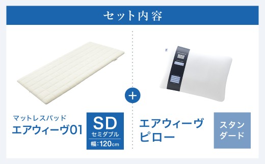 マットレス「エアウィーブ01」セミダブルサイズとピロー「スタンダード」のセット。