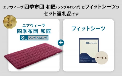 エアウィーヴ 四季布団 和匠 シングルロング × フィットシーツ ( ベージュ ) セット 布団 寝具 ふとん シーツ