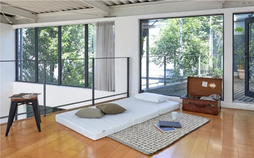 一枚敷き可能な三つ折りマットレス、フローリングや畳に直接敷いてお使いいただけます