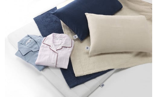 UCHINOの特許素材“エアリーフィール”を採用。羽毛のような柔らかい肌触りで心地よく、タオル地なので吸水性が高く乾きやすさが特長です。