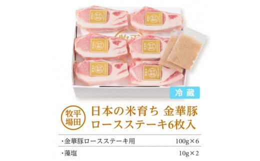 6. 豚肉 金華豚ロースステーキギフト 600g (100g 6枚) 豚 金華豚 ロース ステーキ ロースステーキ 厚切り カット 濃厚 柔らかい 世界三大ハム サシ 米 お米 国産米 冷蔵 藻塩 セット 贈り物 贈答 ギフト 平牧 平田牧場 山形 酒田 SC0515