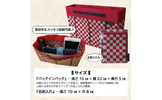 畳のヘリを使った、小粋なバッグインバッグと名刺入れのセット