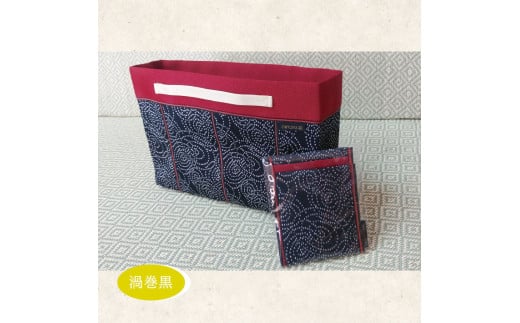 7. 【畳の縁で制作】バッグインバッグと名刺・カードケース 渦巻(黒) SA2733