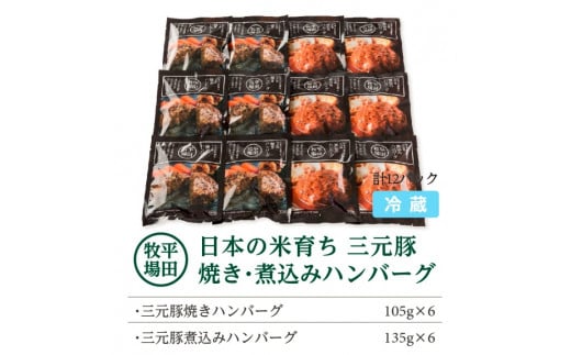 三元豚ハンバーグ 2種 12個(各6個) 1.44kg 焼きハンバーグ 煮込みハンバーグ ハンバーグ ハンバーグギフト 三元豚 ブランド豚 豚肉 簡単 簡単調理 冷蔵 贈り物 贈答 ギフト 平牧 平田牧場 山形 酒田 SC0104