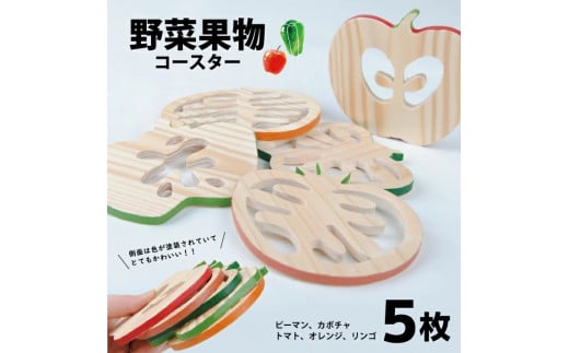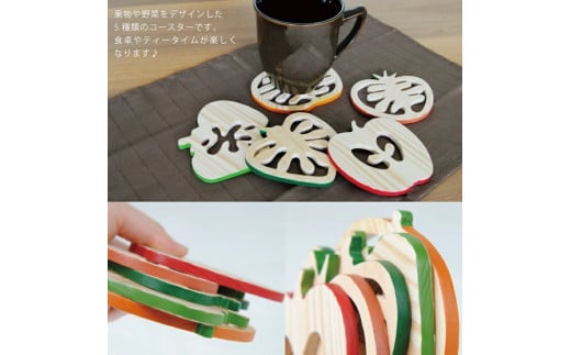 ≪木のぬくもりが伝わる 手作り木製コースター≫野菜や果物のかわいいデザインです♪