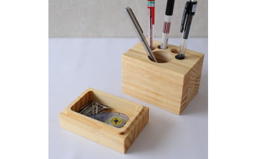 【木のぬくもり】シンプルで存在感のある手作りペン立て 収納スペース付き
