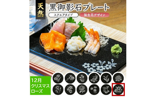 7. 天然黒御影石 スクエアプレート 1枚 【誕生花彫刻(12月クリスマスローズ)】 SE0267