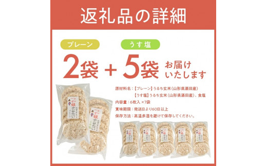 つや姫玄米ポンせんべい(プレーン 6枚入×2袋・うす塩 6枚入×5袋) 計7袋 SA2028