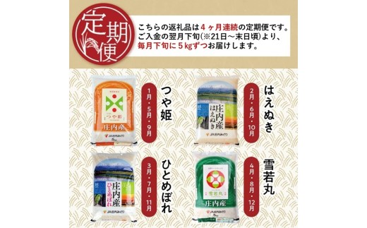 ✨庄内米4銘柄✨を順番に毎月5kg、4ヶ月連続でお届けします!!