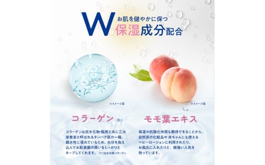 ●「コラーゲン」と「モモ葉エキス」の保湿成分をダブル配合。パッチテスト済み。