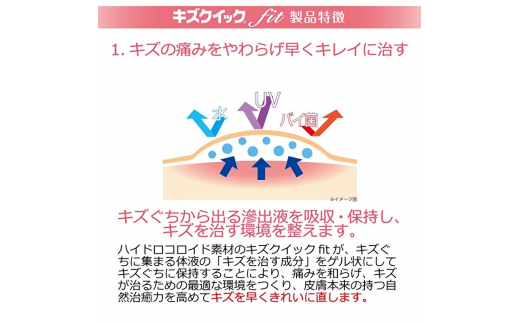 キズの痛みをやわらげ早くキレイになおす。 指先にピッタリフィットする独自形状。