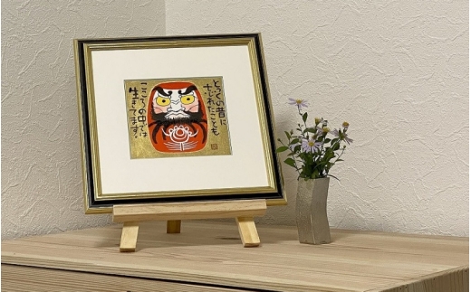 独自の画風“水墨ポップアート”で描き下ろした「達磨さん」にメッセージを添えた作品です。不屈の精神の達磨さんだから余計に沁みる独り言です。