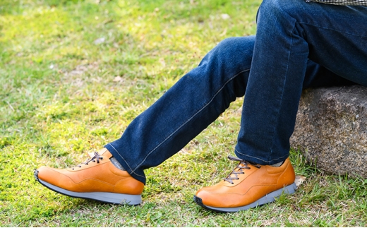 ソールは高性能なビブラムソールでアッパーは独特のムラ感と艶感が特徴のホースレザーを使用。履き心地とデザイン性を兼ね備えたハイクオリティーなタウンカジュアルシューズ。奈良県大和郡山市で製造し、大和の職人が1足1足丁寧に仕上げた価値ある逸品。