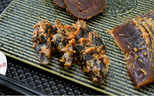 ウリなどの野菜を約1年間塩漬け、塩抜きのために酒粕(かす)に4回漬け直し、さらに味付けのために2回漬けます。