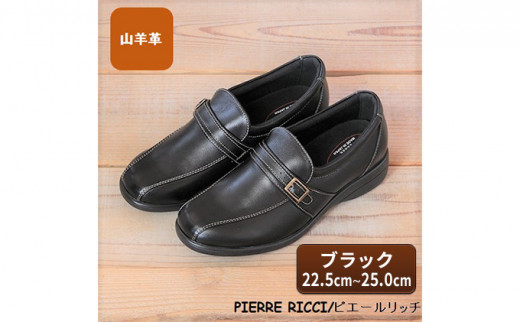 【PIERRE RICCI】ピエールリッチ 5E 山羊革サッとはけるレディースシューズ 甲ゴムタイプ ブラック(婦人靴)25.0cm [№5990-7317]0225