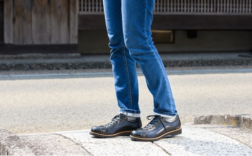 デニムの聖地岡山のデニムと日本有数の革の生産地姫路の牛革、そして地場産業で靴の生産が盛んな奈良県大和郡山市の製造という日本のものづくりを結集させた逸品。トレンドのデニムと牛革が見事にマッチングしておりパンツスタイルからスカートスタイルまで合わせることができ、オシャレの幅が広がる。しかも片足約250g(23.5cm片足基準)でとても軽量。カラーはブラック。サイズは22.5cm~24.5cm(0.5cm刻み)。