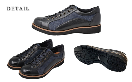 デニムの聖地岡山のデニムと日本有数の革の生産地姫路の牛革、そして地場産業で靴の生産が盛んな奈良県大和郡山市の製造という日本のものづくりを結集させた逸品。トレンドのデニムと牛革が見事にマッチングしておりパンツスタイルからスカートスタイルまで合わせることができ、オシャレの幅が広がる。しかも片足約250g(23.5cm片足基準)でとても軽量。カラーはブラック。サイズは22.5cm~24.5cm(0.5cm刻み)。