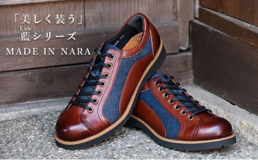 デニムの聖地岡山のデニムと日本有数の革の生産地姫路の牛革、そして地場産業で靴の生産が盛んな奈良県大和郡山市の製造という日本のものづくりを結集させた逸品。トレンドのデニムと牛革が見事にマッチングしておりパンツスタイルからスカートスタイルまで合わせることができ、オシャレの幅が広がる。しかも片足約250g(23.5cm片足基準)でとても軽量。カラーはワイン。サイズは22.5cm~24.5cm(0.5cm刻み)。