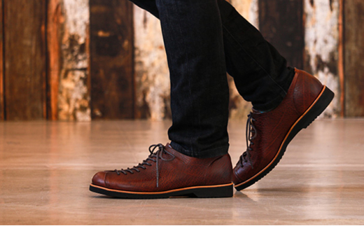 奈良県大和郡山市は日本有数の革靴の産地。この地で昔からひたむきに革靴作りに向き合ってきた靴メーカー7社が共同開発した革靴「KOTOKA」はシンプルで履きやすいデザインが特徴。甲革に鎌倉時代に遡る歴史を持つ日本最大の革の産地、兵庫県たつの市で、特に丁寧な加工で評価の高いタンナー「マルヒラ」で、植物タンニンで二次なめしされた革を使用。製造過程で通常2回使用するドラムを、なめし、染め、蝋引き、揉みの計4回使用し、手間をかけてつくられた革です。色ムラやシワが、履くほどに深味わいを醸し出します。古都ラインの靴はこの革の風合いを生かした、シンプルで履きやすく、飽きのこないデザインの靴です。