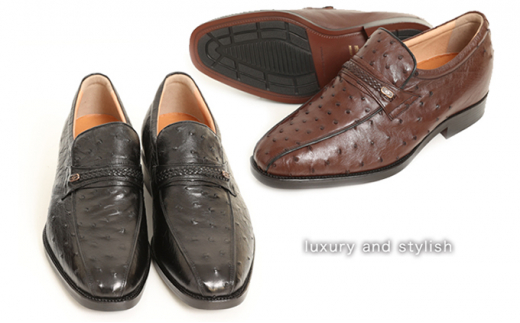 オーストリッチ革 ビジネスシューズ 紳士靴 スワローモカ 5cmアップ 4E ワイド No.67 ブラウン 26.0cm [№5990-7674]0280