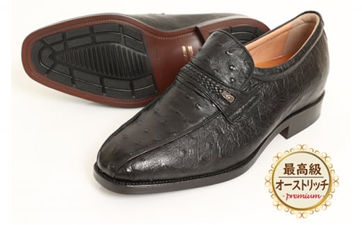 7. オーストリッチ革 ビジネスシューズ 革靴 本革 紳士靴 スワローモカ 4E ワイド No.1267 ブラック 26.5cm [№5990-7703]0284