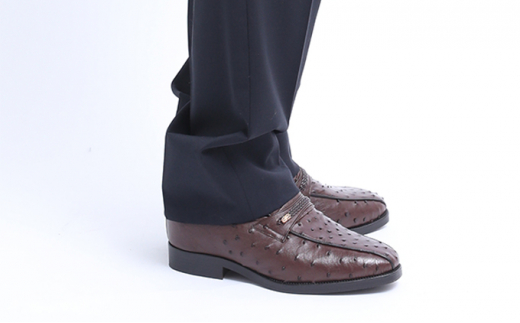 7. オーストリッチ革 ビジネスシューズ 革靴 本革 紳士靴 スワローモカ 4E ワイド No.1267 ブラウン 23.5cm [№5990-7704]0285
