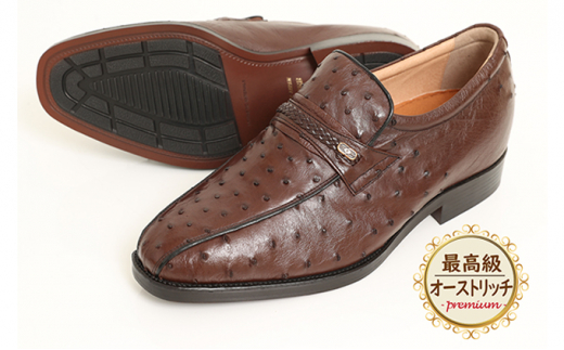 7. オーストリッチ革 ビジネスシューズ 革靴 本革 紳士靴 スワローモカ 4E ワイド No.1267 ブラウン 25.0cm [№5990-7707]0285