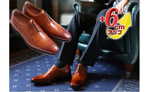 7. ビジネスシューズ 本革 革靴 紳士靴 外羽根プレーン 6cmアップ シークレットシューズ No.1931 キャメル 24.5cm [№5990-7762]0293