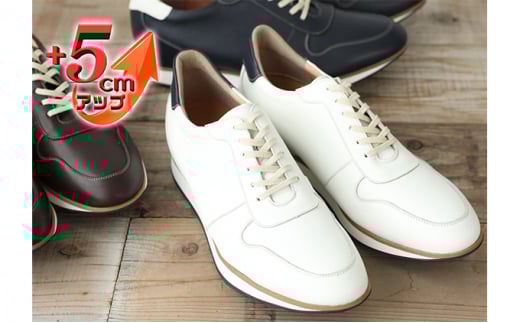 レザースニーカー 本革 カジュアルシューズ 5cmアップ シークレットスニーカー No.801 ホワイト 24.5cm [№5990-7808]0306