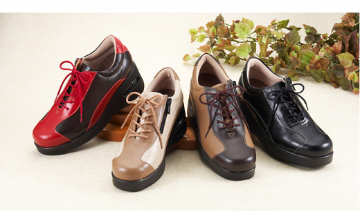 日本有数の革靴の産地、奈良の靴メーカーが手掛ける、軽くてやわらかな山羊革使用。かかとにエアークッション内蔵で着地時の衝撃を吸収。内側にファスナー付きで脱ぎ履きも簡単。厚底仕様で履き心地はそのまま5.5cmスタイルUP。脚長に魅せるウォーキングシューズ。毎日の外出はもちろん旅行などの長時間のお出かけにもおすすめ。発売以来10年以上愛され続けるこだわりの逸品。