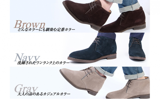 牛革 本革 日本製 ベロア チャッカーブーツ 5cmアップ カジュアルシューズ シークレットブーツ 撥水 No.850 ブラウン 26.0cm [№5990-7911]0321