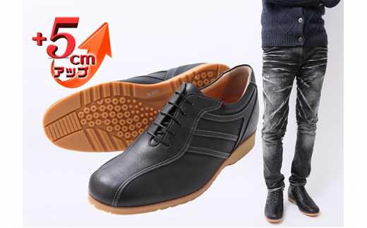 レザースニーカー 本革 カジュアルシューズ 5cmアップ シークレットスニーカー No.997 ブラック 23.5cm [№5990-7921]0323