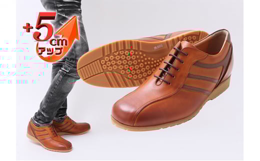 レザースニーカー 本革 カジュアルシューズ 5cmアップ シークレットスニーカー No.997 ブラウン 25.0cm [№5990-7931]0324