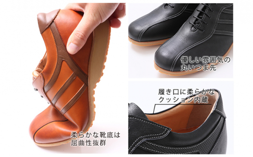 本革独特の足全体を包み込む心地よさで、履くほどに足に馴染んでいきます。